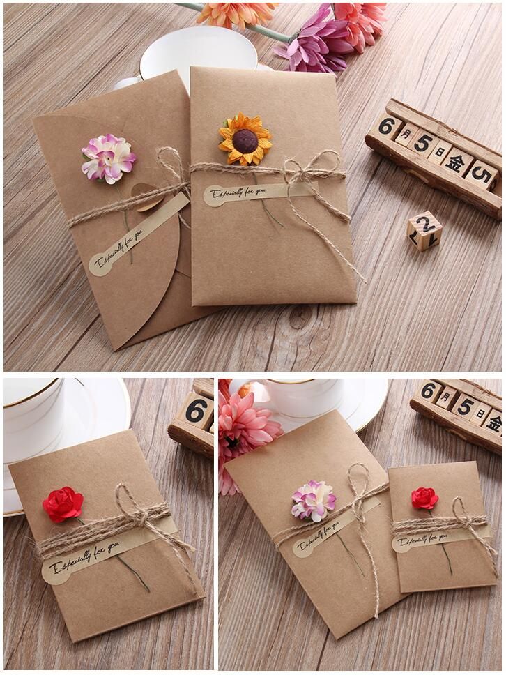 6pcs Dry Flower Kraft Paper Greeting Card Handmade Diy Wedding Invitation Card With Square Envelope Favors Cards Invitations Aliexpress
